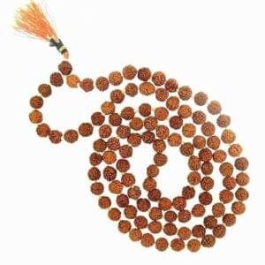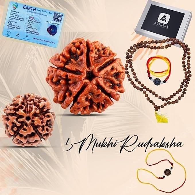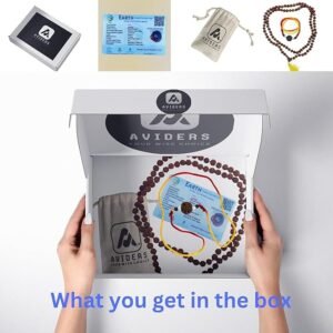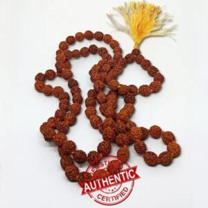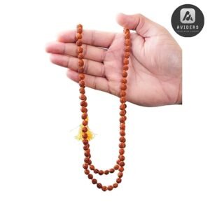 Embrace the rich cultural heritage of India with this exquisite set of mala beads and accessories. The centrepiece is a stunning rudraksha mala, meticulously handcrafted with 108 intricately carved rudraksha beads that exude warmth and earthy tones. Complementing the mala is a vibrant trio of red, yellow, and orange cotton threads, adorned with black onyx beads and a captivating rudraksha pendant. This ensemble is perfect for spiritual practices, meditation, or simply as a stylish accessory. The mala measures approximately 75 cm in length, ensuring a comfortable fit. Elevate your spiritual journey or embrace the timeless charm of Indian craftsmanship with this beautiful set. Please note that the product is intended for decorative purposes only and should be handled with care.